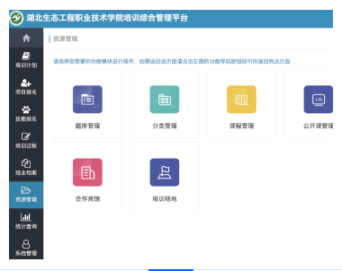 针对不同的培训阶段建立课程库、师资库、试题库、试卷库